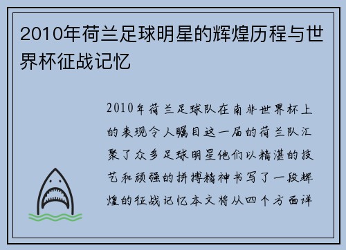 在当今社会,超级明星与足球明星之间的关系日益受到关注。两者不仅在各自的领域内享有极高的地位和影响力,而且他们之间往往建立起深厚的友谊。这种跨界的情谊源于共同的热爱、相似的人生经历以及对成功的不懈追求。本文将从四个方面详细探讨超级明星与足球明星之间的深厚情谊以及共同热爱的背后故事,包括他们如何通过社交媒体互动、共同参与慈善活动、分享生活中的点滴,同时也会分析这种关系对双方职业生涯和个人形象的重要影响...